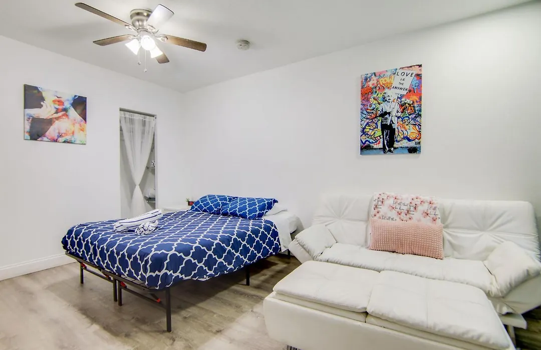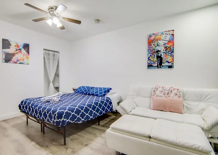 The beachfront 1-bedroom Super Beach Deal, Apt W/2 Queen Beds On Ocean Dr Miami Beach is located around 15 km from Miami Airport train station and just moments from the Lummus Park Beach. Staying in this 38 m² apartment, nestled a mere 9 minutes' walk from the Art Deco Historic District, guests can relax on a terrace.